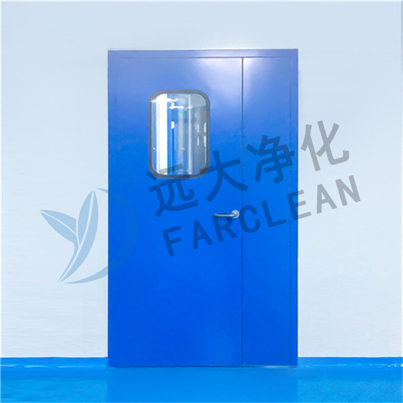 Um dos materiais mais comuns para portas de salas limpas é o aço inoxidável. Oferece excelente resistência à corrosão, tornando-o adequado para ambientes onde são aplicados regularmente desinfetantes fortes e agentes de limpeza. As portas de aço inoxidável também não são porosas, evitando o acúmulo de bactérias ou partículas na superfície. Sua resistência mecânica garante durabilidade em áreas de tráfego intenso, como salas limpas farmacêuticas ou instalações de semicondutores. Em aplicações que exigem resistência ao fogo, a construção em aço inoxidável também pode ser combinada com núcleos resistentes ao fogo.